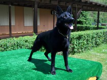 Alle Rüden tief dunkelgrau. Die Hündinnen sind schwarz, gestiefelt mit braunen Abzeichen.